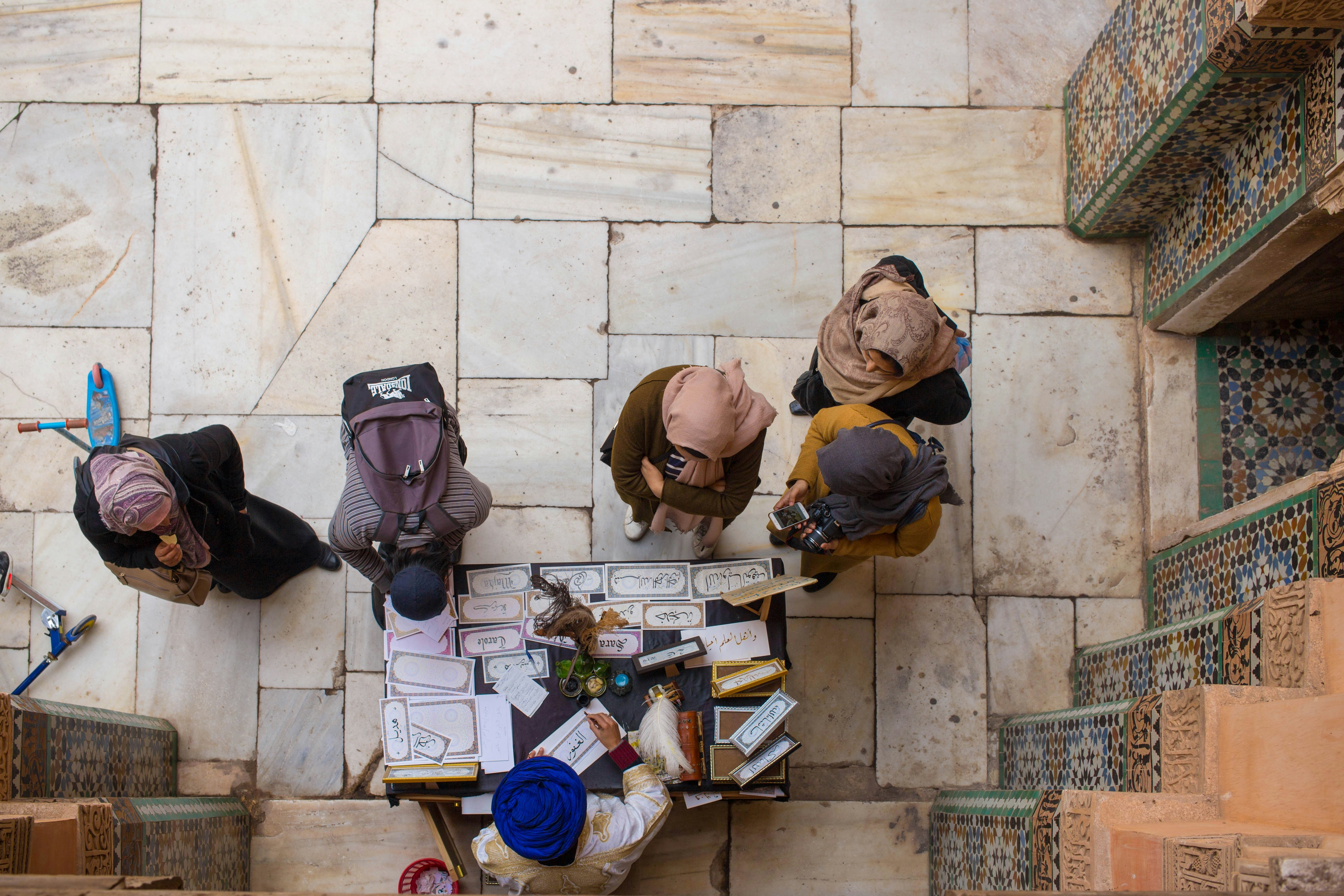 This was taken on our first family trip in over 15 years! As we walked around the souks we stumbled upon the Ben Youssef Madrasa, where we had the this very talented calligrapher write out our names. Beautiful detail surrounded the interior and the madrasa offered a quiet sanctuary from the busy streets of Medina.