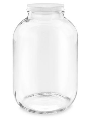 1 Gallon (128 oz) Glass Economy Round Jar 110-400 pk4 Stock number 1ER1282AK is a 1 gallon (128oz) Economy Round jar with a 110-400 continuous thread finish. Featuring a wide-mouth opening for easy product removal and a short, squat profile, the one-gallon Economy Round jar is perfect for candy, beef jerky, pickles, cookies, or any other snack! Paksh Novelty 1-Gallon Glass Jar Wide Mouth with Airtight Plastic Lid - USDA Approved BPA-Free Dishwasher Safe Mason Jar for Fermenting, Kombucha, Kefir, Storing and Canning Uses, Clear (4 Pack) 2,032 $37 99 Get it as soon as Tue, Nov 16 FREE Shipping by Amazon Uline stocks a huge selection of glass containers, 1 gallon glass jars and wide mouth glass jars. Order by 6 pm for same day shipping. Huge Catalog! Over 38,500 products in stock. 12 Locations across USA, Canada and Mexico for fast delivery of glass conta One Gallon (128 oz) Wide Mouth Jar. Great for bulk canning, fermenting, dry storage, cookies, candy and terrariums. Often used for pickles, pickled eggs, kombucha, and various bulk storage items. Wider than wide mouth home canning jars (86mm or 3.39"), these jars take 110/400 closures (110mm or 4.33").
