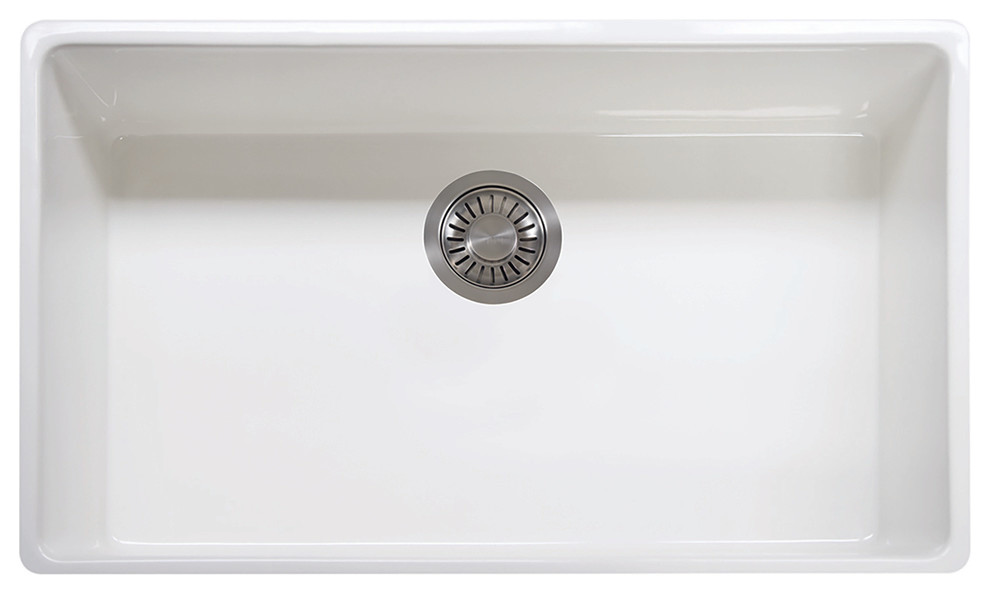 Our editor's choice for fireclay sinks, also known as apron sinks, is the Kraus KFR1-33GWH. This offers an excellent option for those looking for a single-bowl style of sink, and can last a number of years if treated correctly. In fact, a five year warranty is on offer with this sink. Fireclay Undermount Kitchen Sinks . Actual Left to Right Length (In.): Less than 20. ROHL. Black. Low Divide. Double Bowl. Single Bowl. Shop Savings. ... ZLINE 30" Rome Dual Mount Single Bowl Fireclay Kitchen Sink with Bottom Grid in White Gloss (FRC5124-WH-30) Model# FRC5124-WH-30 (15) $ 819 49. Kraus fireclay sinks allow you to enjoy the ultimate level of functionality and style in any kitchen. Our collection offers a range of designs; from clean and contemporary dual mount basins, to farmhouse sinks with beautifully pronounced apron fronts that fit perfectly into any environment, including rustic, traditional, urban, and modern kitchens. Finish Your Kitchen With Kitchen Sinks From Lowe's Your kitchen sink should be a reflection of your personal style and also meet your everyday needs. At Lowe's, we carry sinks in a variety of materials, finishes, mounts and configurations for trendy and traditional kitchens — like apron-front sinks and fireclay farmhouse sinks.