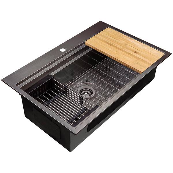 AKDY Drop-In 32-in x 22-in Gunmetal Matte Black Single Bowl 1-Hole Workstation Kitchen Sink