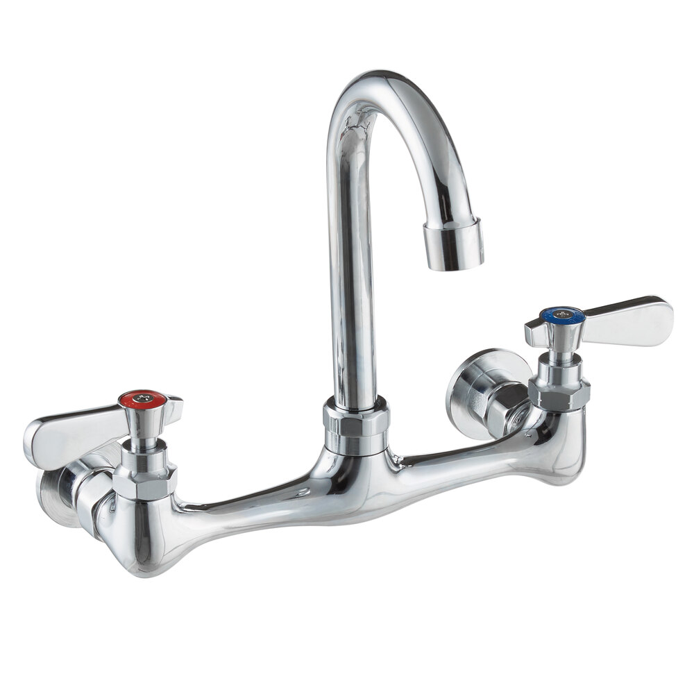8 center wall mount faucet. Install a convenient and useful water fixture in your business with this Regency wall mount bar sink faucet! This faucet features 8" centers for fast and easy installation, and its 12" swing spout provides excellent reach and clearance for rinsing out glasses and washing dishes in your three compartment sinks.