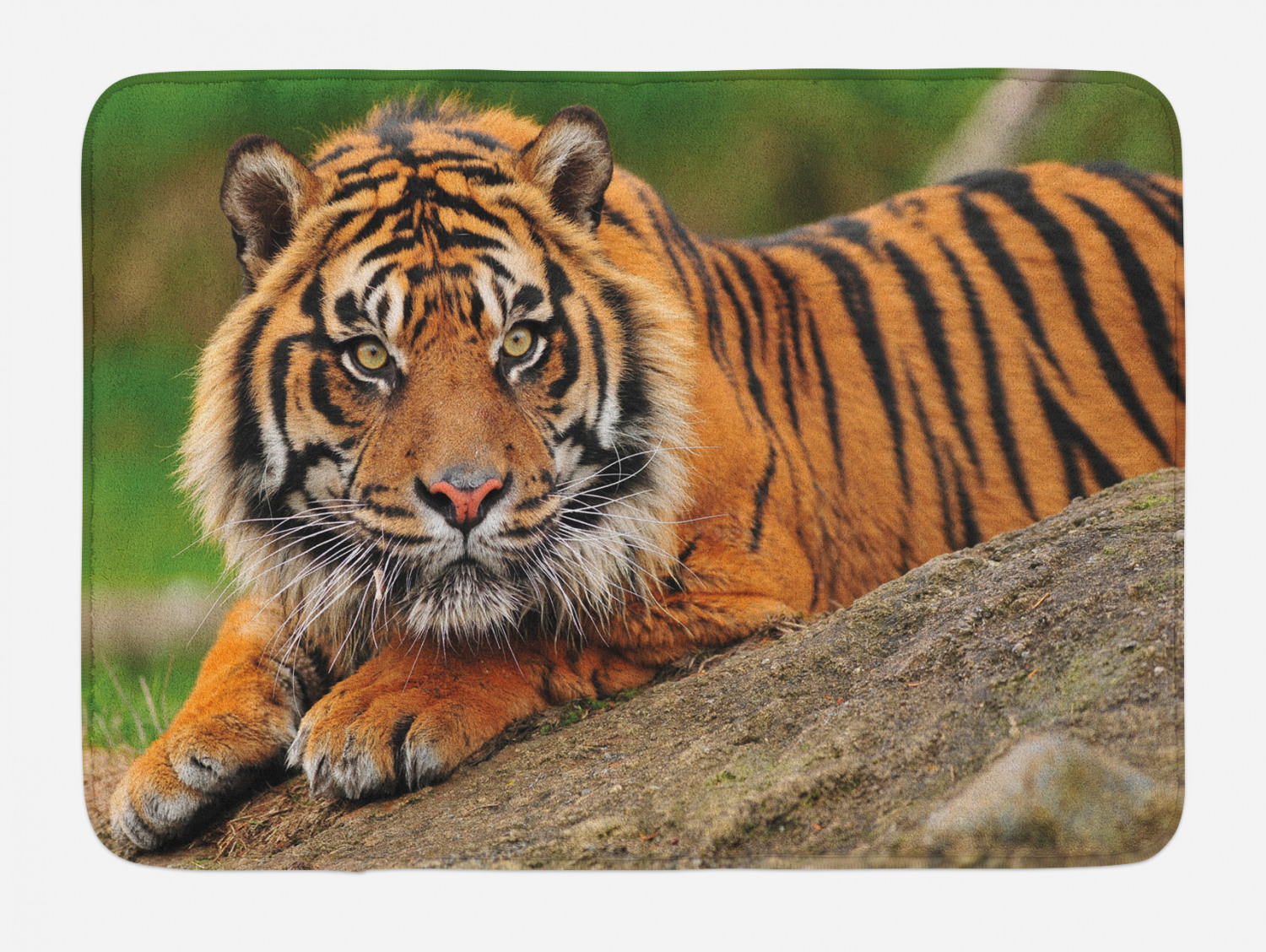 Tiger Bath Mat, Noble Beast Crouching on a Rock Sumatrian Large Cat Beautiful Nature Photography, Non-Slip Plush Mat Bathroom Kitchen Laundry Room ...