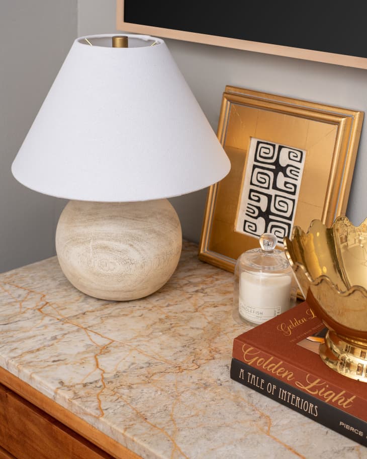 Kitchen Design Tip: Lamp on the Counter | Kitchn In our last apartment, Maxwell and I had a tiny metal lamp with a paper shade painted by his mother on our little kitchen counter top. Now, you probably couldn't find two more different settings than Ina Garten's and ours but the effect was the same: taking a table lamp and using it to create warm, cozy light in a room that can often have lighting challenges.
