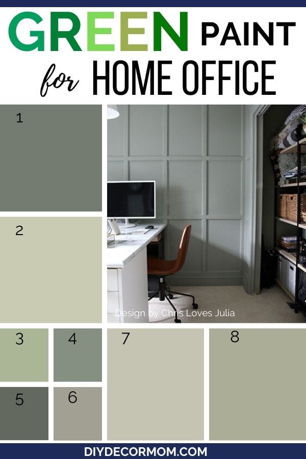 Best Home Office Paint Colors 2022 - DIY Decor Mom Benjamin Moore Carolina Gull. Behr Pincone Hill. Farrow & Ball Pigeon. Try NM Carolina Gull to get a similar look as the teal office walls above. It's a lovely and versatile bluish-green that will keep you feeling balanced and focused!