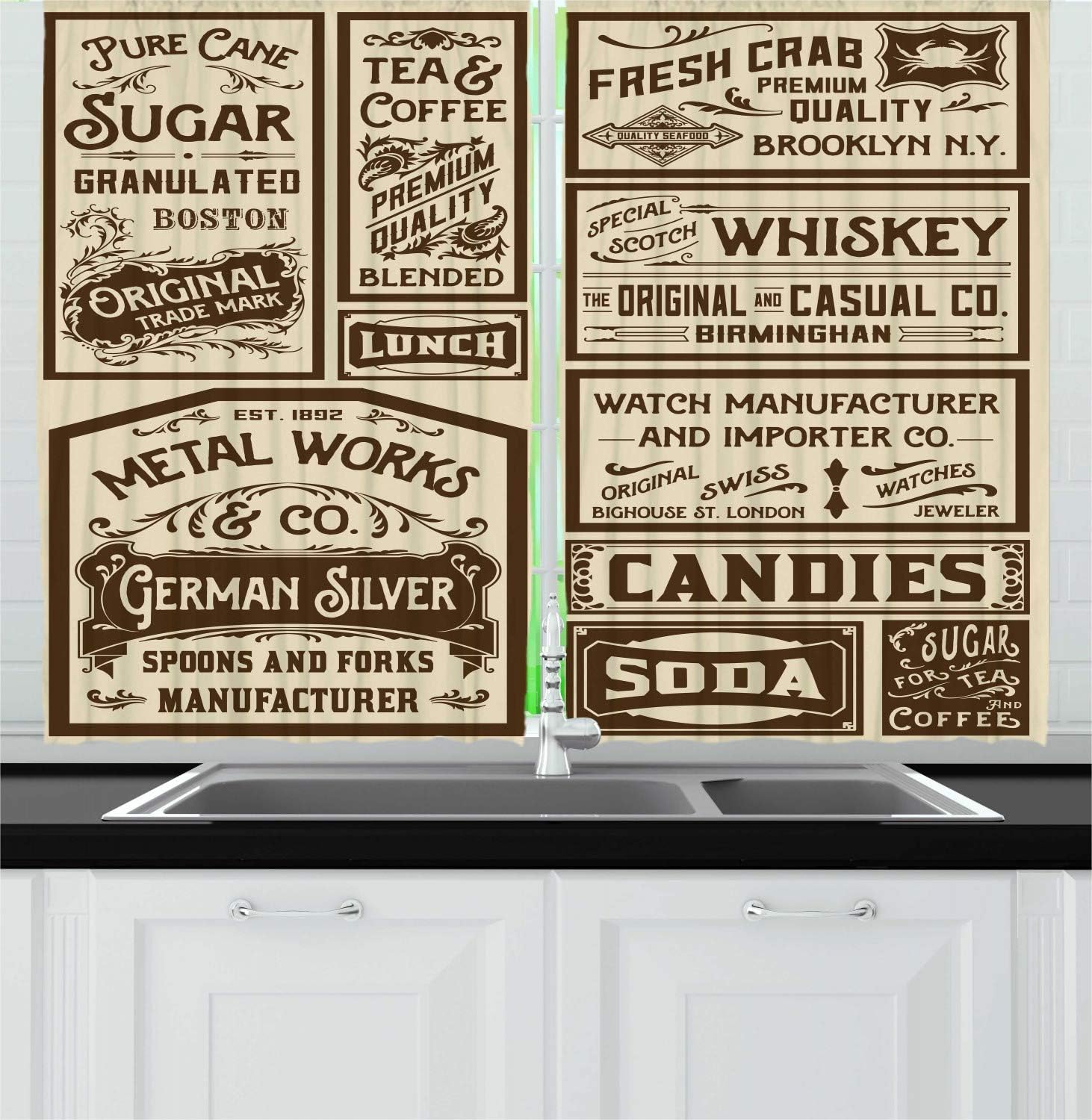 Ambesonne Vintage Kitchen Curtains, Mega Pack Old Advertisement Designs Retro Style Calligraphy Illustration, Window Drapes 2 Panel Set for Kitchen ...