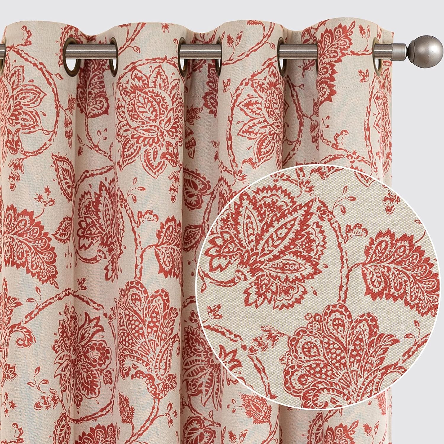 jinchan Floral Scroll Printed Linen Textured Curtains Grommet Top Ikat Flax Textured Medallion Design Jacobean Room Darkening Curtains Retro Living ...