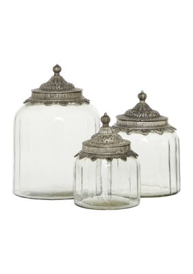 Clear Glass Canisters - Bed Bath & Beyond Ridge Road Décor Clear Decorative Jars (Set of 3) NON-MEMBER PRICE. $139.99 Was $139.99. BEYOND+ MEMBER PRICE. $111.99. Farmlyn Creek. Farmlyn Creek Glass Vanity Canisters with Gold Lids, Mason Jar Bathroom Set (3 Pack) $20.99 Was $20.99.