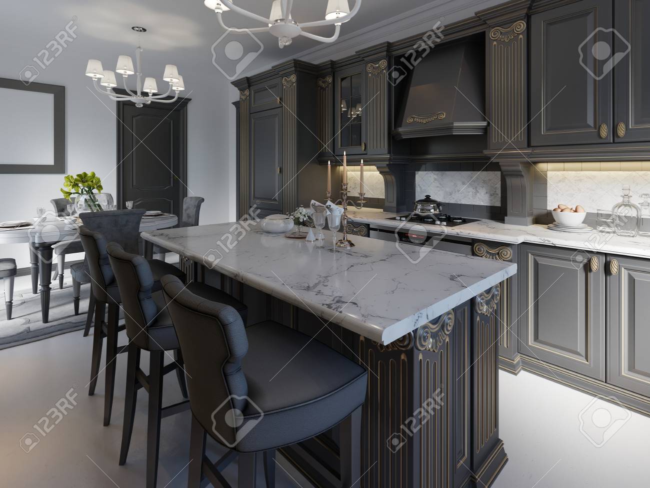 27 Captivating Ideas For Kitchen Island with Seating and Dining Tables Another minimalist kitchen with white kitchen island with extended table on one side. The steel bar stools and aluminum appliances are eye-catching. A kitchen with dark hardwood kitchen floor and white cabinets. The kitchen island is dark while the dining table is ornate with an exclusive silver finish.