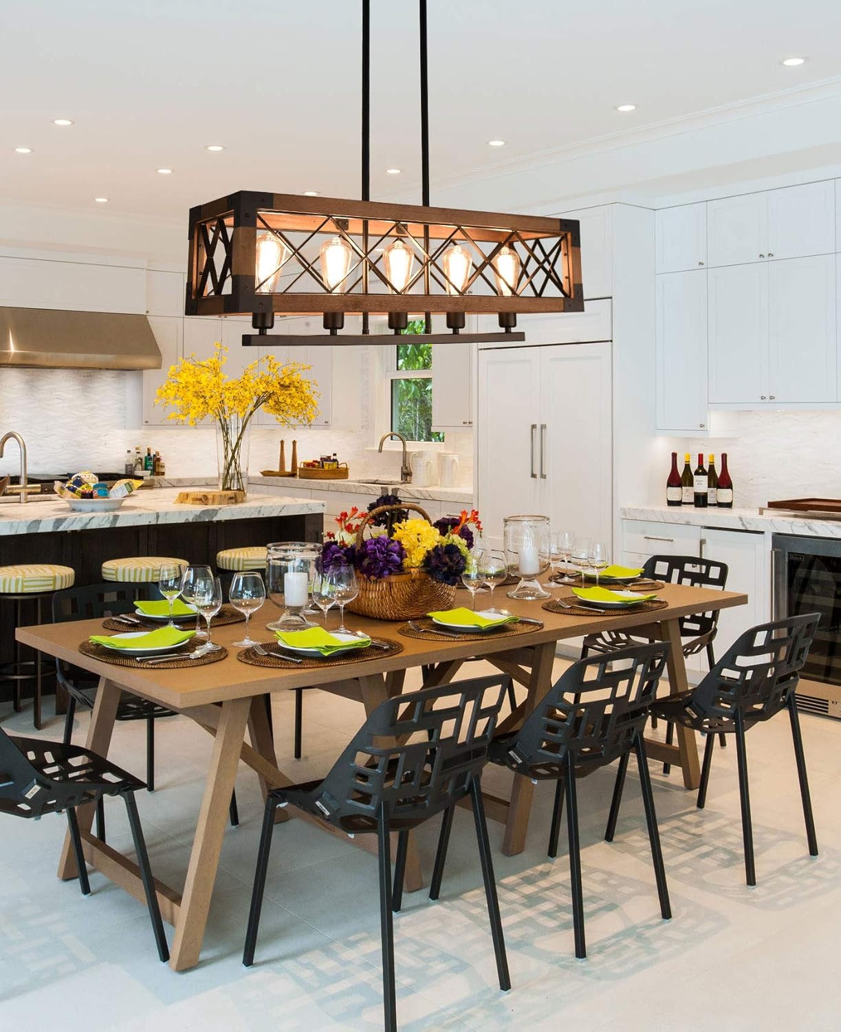 Rectangle Wood Metal Vintage Pendant Light, Industrial ... The perfect combination of wood and metal to create a unique modern farmhouse style is not only your industrial kitchen island pendant lighting but also an ornament for your home table. Openwork wood and metal frame add rustic vintage flair to your space, it boasts rustic-finished wood construction, designed to cast a soft ambient light over your room.