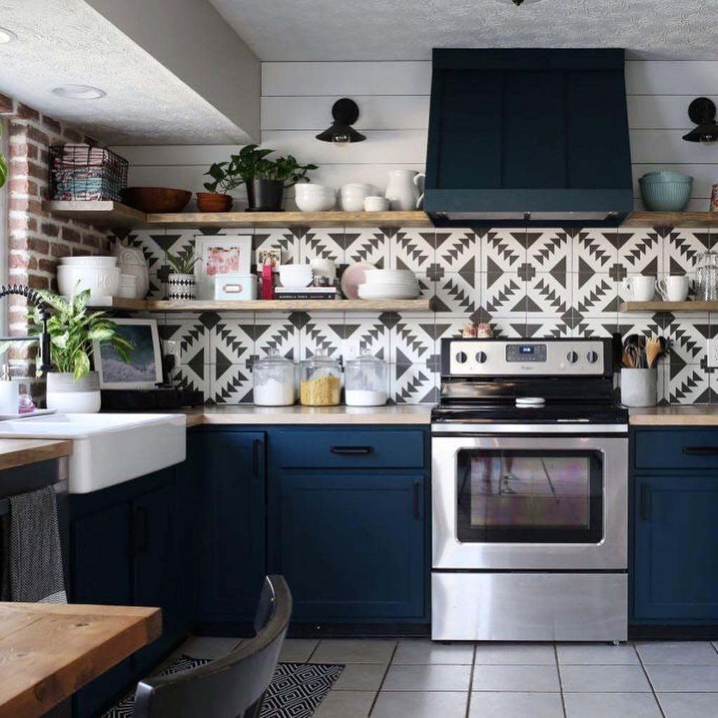 23 Blue Tile Design Ideas For Your Kitchen... - Sebring Design Build A blue tile looks cool and mirrors the serene peacefulness of water and is an excellent fit for bathrooms. For instance, a vibrant small arabesque pattern brings vitality to your kitchen while a sandy wall color and white cabinets avoid the tiles from overpowering the space.