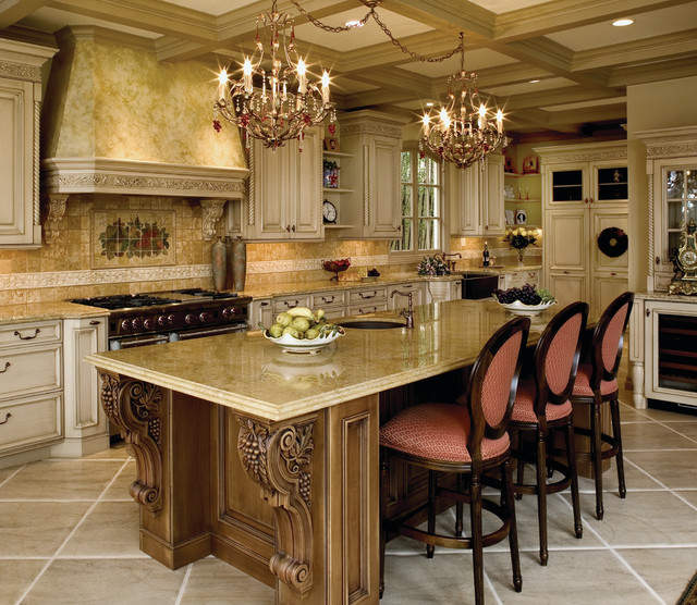 Old World Style Kitchen - Houzz Old World Custom Kitchen DesignArt Studios A tuscan triumph located as part of the historic Knapp Estate nested in the hills of Montecito, California, looking South towards Malibu. This kitchen displays beautifully crafted details in the cabinetry, corbels, coffered ceiling and tile work. Save Photo Old World Style Kitchen in Colleyville