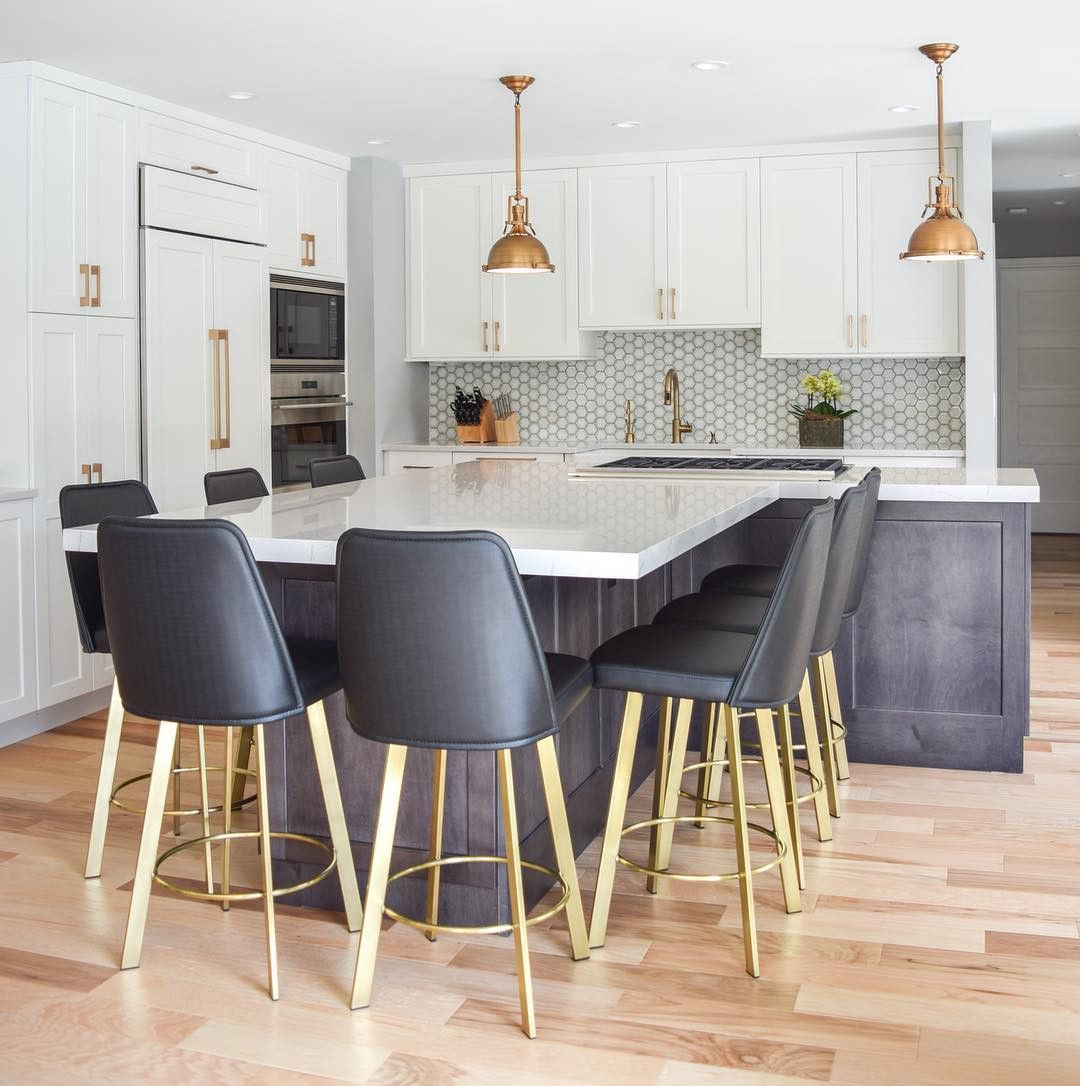 T Shaped Kitchen Island Design Ideas - DecorPad White and tan stools is a t- shaped kitchen island dining table fitted white a honed marble countertop lit by two antique brass Eugene Pendants hung from a white plank ceiling over a sink with a brass deck mount faucet. Lucy and Company. view full size. A brown oak t- shaped island seats white and tan counter stools at a white and gray honed ...