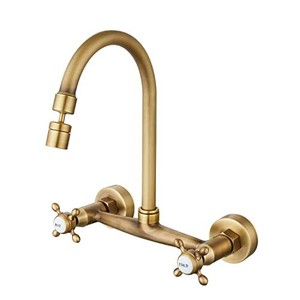 Antique Brass - Kitchen Faucets - Kitchen - The Home Depot Style. Classic (6) Farmhouse (5) Cottage (3) Rustic (3) Southwestern (3) Features. No Additional Features (42) Gooseneck (3) Pull Out Spray Wand (3) Spot Resistant (2) Spout Swivel Type. 360 Degree Spout Swivel (36) Fixed (6) 180 Degree Spout Swivel (5) Heritage 2-Handle Wall-Mount Kitchen Faucet in Antique Copper. by Kingston Brass. Camden ...