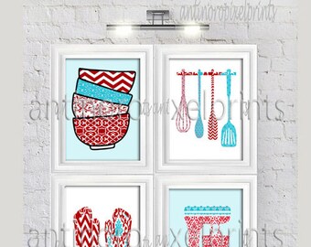 Turquoise Red Kitchen Quote Print | Turquoise Red Wall Art | Funny quote poster for dining room | Teal dining room decor | Kitchen decor