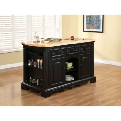 Amazon.com - Powell Pennfield Kitchen Island and Stool ... The Pennfield Kitchen Island with Natural finished top and Black Sand-Through finished base includes three adjustable shelves, three drawers with natural finished knife block, silverware tray, and divider organizer. Both ends feature towel bars and two sp Product information Technical Details Additional Information Feedback