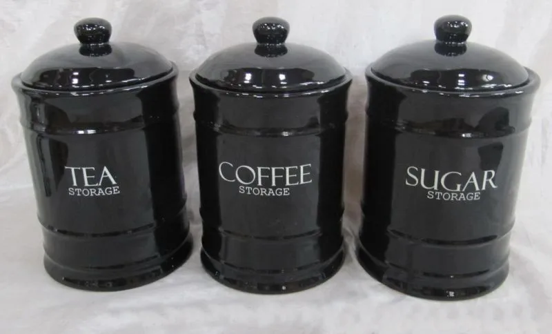 Set of Coffee Tea & Sugar Kitchen Canisters & Jars Decorative Nesting 3 Piece Coffee, Tea, & Sugar Set by Gracie Oaks $41.99 45 Free Shipping +2 Colors Airtight Kitchen Canister Decorations With Lids, Black Metal Rustic Farmhouse Country Decor Containers For Sugar Coffee Tea Storage (Set Of 3) (4" X 6.75") by Red Barrel Studio® From $42.99 5 Free Shipping Sale +5 Colors