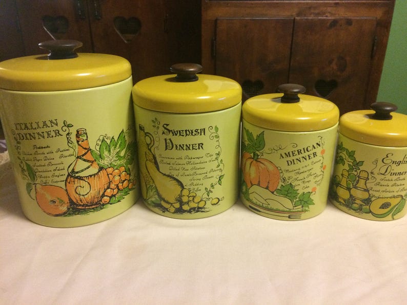 Kitchen Canisters Vintage | Etsy Vintage Metal Blue White Scandinavian Storage Organization Canisters,Kitchen Decor,Cottage Style,Farmhouse Decor,Set of 4,Gift under 50 MeadowRoadVintage (520) $42.00 FREE shipping Kitchen canister set MarigoldVintageNess $38.00 FREE shipping Vintage Green Tupperware Canisters. Set of 4 OldForestCuriosities (8) $40.00 FREE shipping