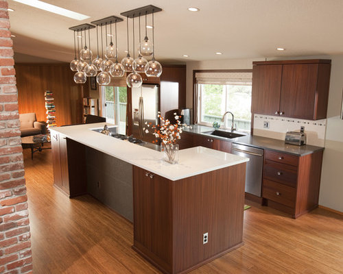 Mid century modern kitchen remodel. 12 Stunning Midcentury Modern Kitchen Ideas - The Spruce In our humble opinion, no midcentury modern kitchen is complete without a few must-have appliances in bright or pastel colors. Atlanta, Georgia based interior design firm Kandrac and Kole added midcentury charm to this traditional cooking space by pairing a retro red range by Big Chill with a cherry red electric mixer and bowl set by KitchenAid. 75 Small Mid-Century Modern Kitchen Ideas You'll Love - Houzz If you're looking to do a kitchen remodel, keep in mind that a successful Small mid-century modern kitchen design needs to blend functionality with personal prerequisites. Find thousands of Small 1950s kitchen ideas to help you come up with the perfect 1960s design for your space. 17 Key Mid-Century Modern Kitchen Elements and Ideas 14 1960s Kitchen Ideas We Still Love Today 2Modern Zanadoo Fixed Chandelier $2,365.00 Shop 09 of 17 Make Hardware Modern House of Chais While this kitchen could pass for a more minimalist space, it's the semicircular knobs, wood, and matte finishes that give it midcentury modern flair. Midcentury Modern Kitchens We Love | HGTV The open, contemporary kitchen is truly the heart of the home with space to gather around the stunning marble kitchen island and an integrated breakfast area. Comfortable chairs and banquette seating surround the soapstone dining table, while sleek wooden cabinets are clad in waterfall marble countertops. From: Natalie Myers.
