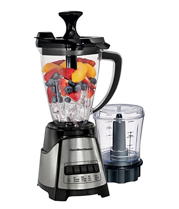 Blenders - Hamilton Beach Brands Hamilton Beach® Professional 1500 Watt Peak Power Quiet Blender MODEL: 58870 $169.99 | SHIPS FREE ADD TO CART 12 Function Blender & Chopper with Mess-free 40oz Glass Jar, 700W Black & Stainless MODEL: 58149 $47.99 ADD TO CART Go Sport™ Personal Blender MODEL: 51142 $31.99 ADD TO CART Smoothie Smart™ Blender with 40oz Glass Jar MODEL: 56207