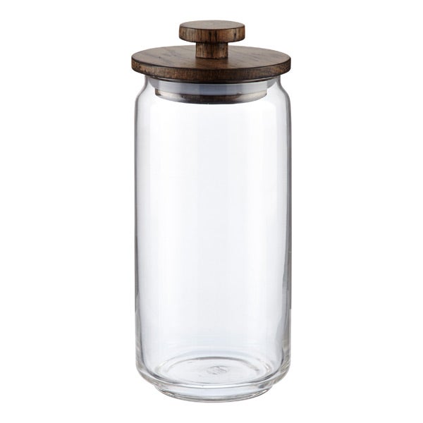 Medium Glass Storage Canister with Wood Lid - Threshold™ With the clear glass construction, this food storage canister lets you see when you're about to run out. The stained wood lid helps keep the contents covered and gives the storage canister a natural, modern aesthetic that you can effortlessly integrate into your kitchen decor. Threshold™: Quality & Design / Casual classics for house and home. Glass Jars With Wood Lids Glass Storage Canisters Food Storage Jars ... The airtight canisters set is made of food-grade high borosilicate glass,100%lead-free,non-toxic. Wood lid with silicone sealing loop creates an airtight and moistureproof environment to keep your food fresh. The glass allows you to see what is inside and easily monitor whether your food has run out.