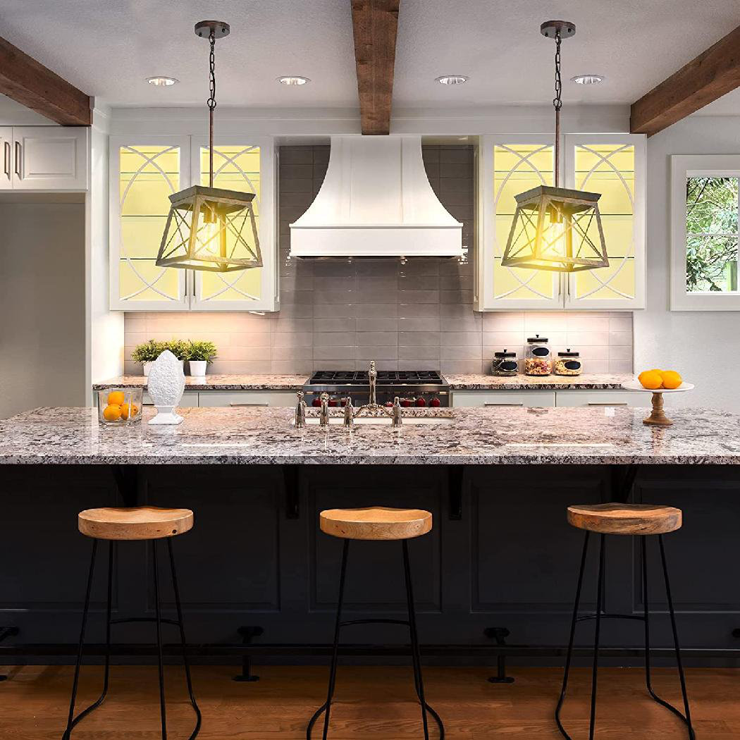 Farmhouse Square Chandelier Rustic, Single-Light Kitchen Island Lighting, Linear Island Light Fixture Farmhouse Pendant Lighting Fixtures For Kitchen ...