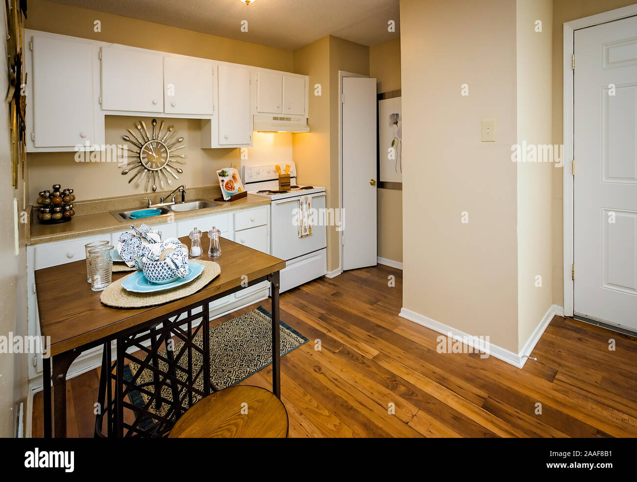 Eat-In Kitchen Ideas - The Spruce In this streamlined minimalist eat-in kitchen, an L-shaped cooking and prep area has plenty of counter space and open floor space. A simple table and chairs pushed up against the opposite wall creates an easy place to dine and breaks up the empty corridor leading to the rest of the apartment. Continue to 9 of 15 below. 09 of 15 Galley Extension