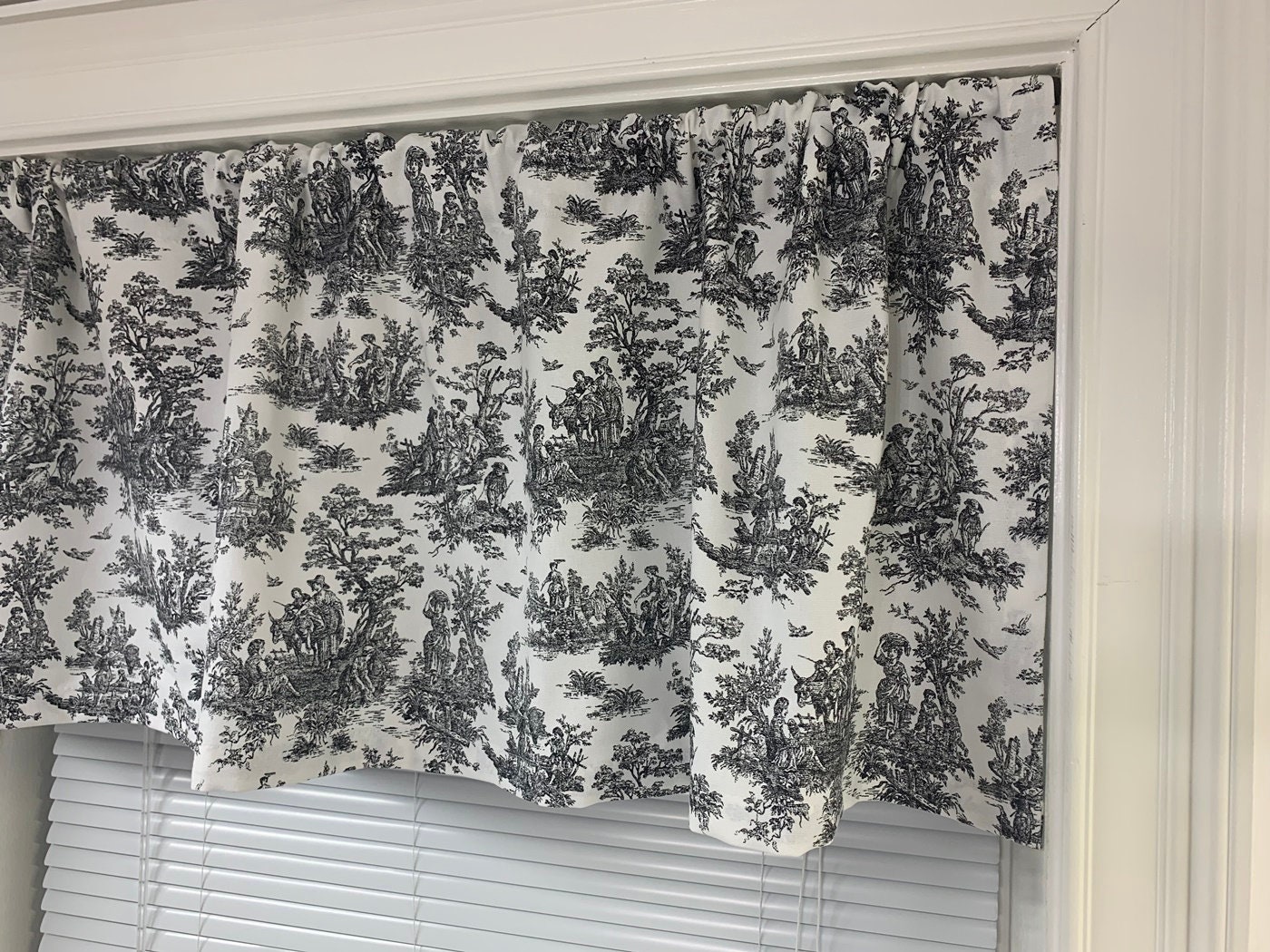 Black and White Toile pattern Tie up Shade, Designer Valance , Vintage style Home Decor, Nursery Decor, Kitchen Curtain