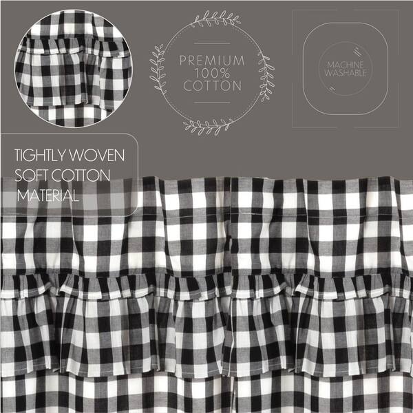 Kate Aurora Complete 3 Piece Country Farmhouse Plaid Gingham Black & White Buffalo Check Kitchen Curtain Tier & Valance Set - 36 in. Long