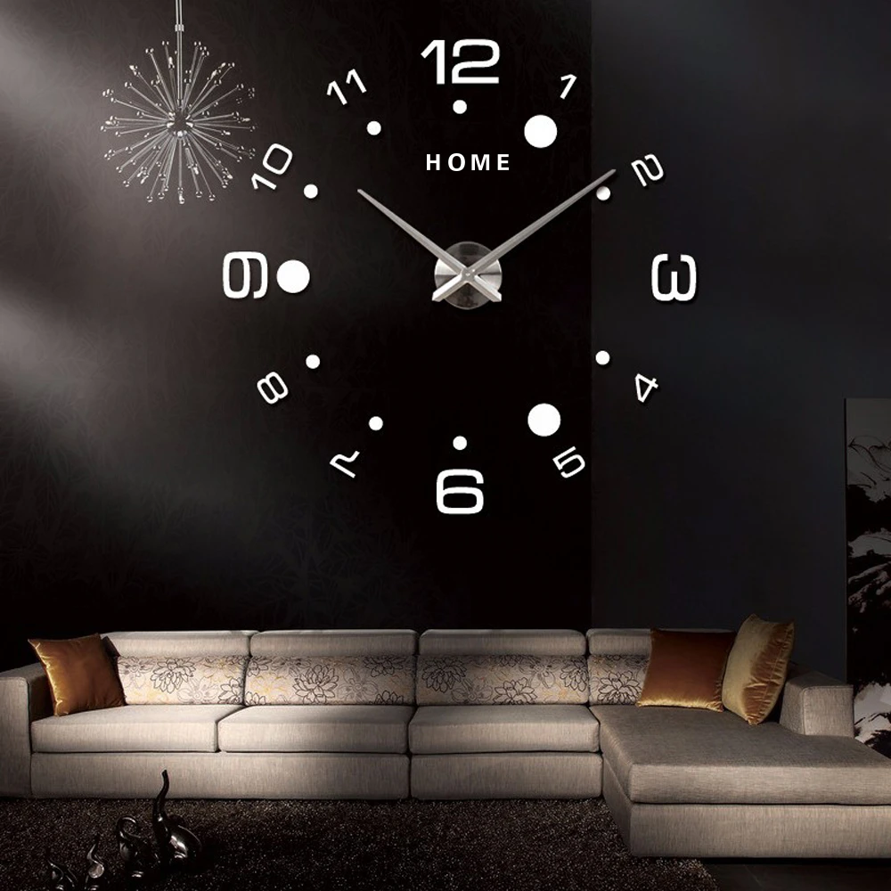 Home Letter Dot Digital Wall Clock 3D DIY Large Clock Acrylic Mirror Wall Sticker Oversize Kitchen Wall Clocks Modern Design
