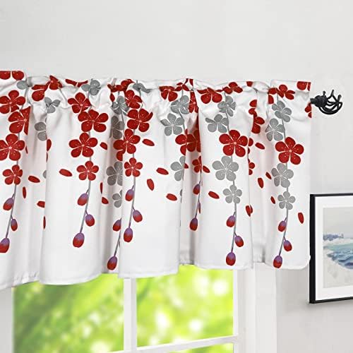 Luvyohmee Red Flower Valances, Floral Kitchen Valance Curtains, 18 Inch Rod Pocket Window Valances, 1 Panel Farmhouse Curtain Valance for ...