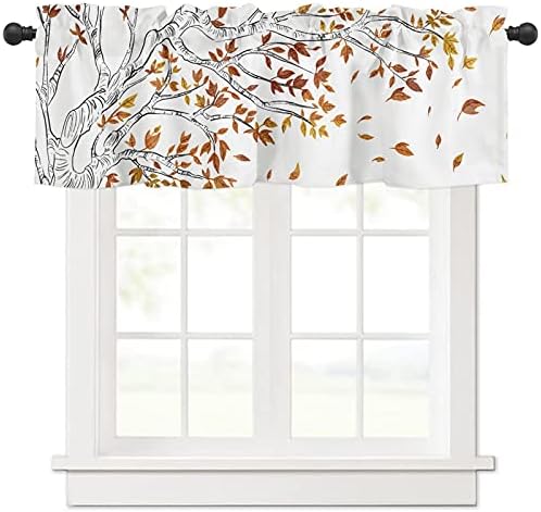 Windows Valances Curtain Autumn Maple Tree Kitchen Valances Rod Pocket Fall Season Woodland Red Leaves Window Treatment Short Topper Curtains for ...