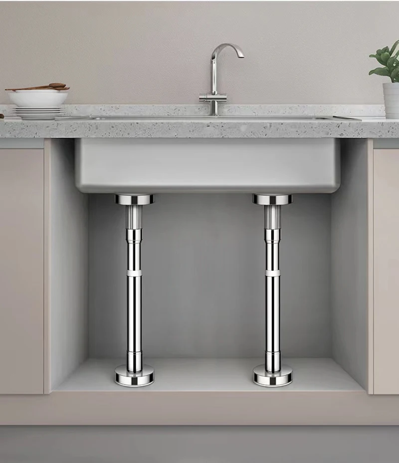 IRONWALLS Undermount Sink Brackets, 2PCS 17.7”-29.5”/45-75cm Height Steel Kitchen Sink Cabinet Support Poles Adjustable, Drilling Free Sink Repair Kit ...