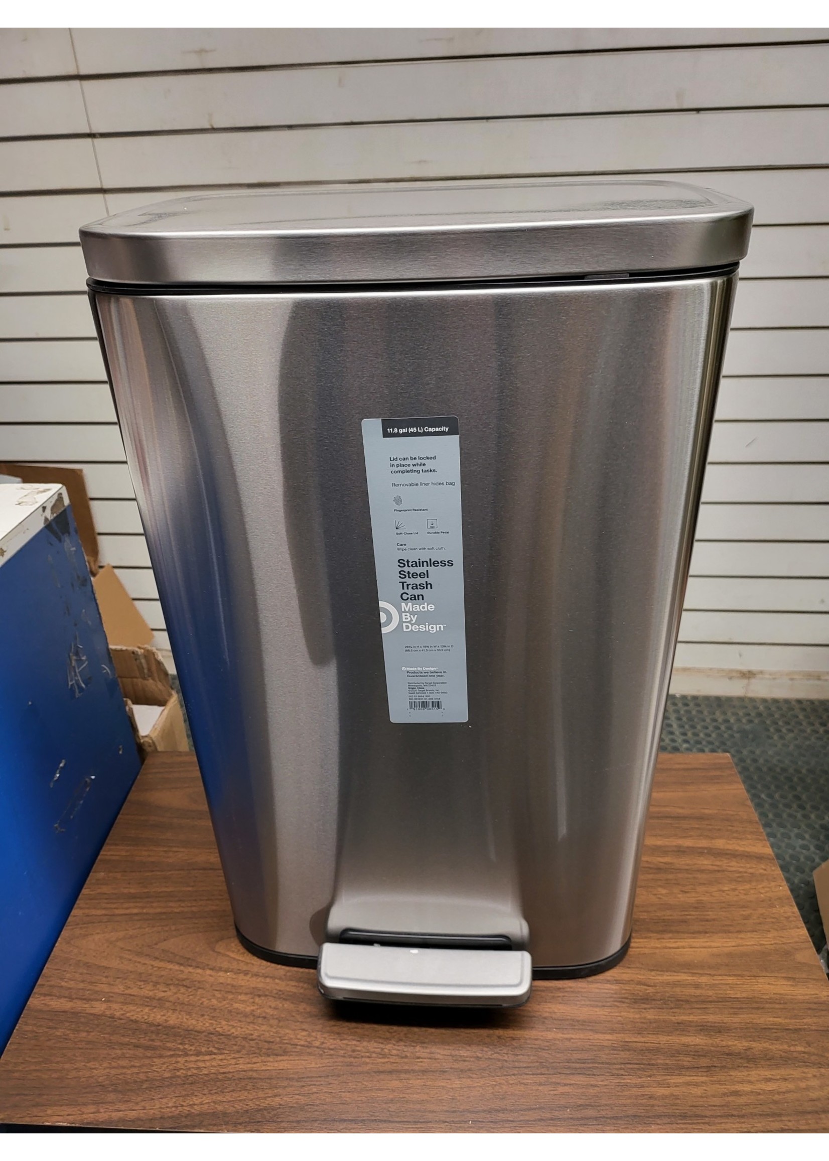 Stainless steel Step Trash Cans at Lowes.com Show 40 Results. Lid Type: Step Color/Finish Family: Stainless steel. simplehuman. 12-Gallon Brushed Stainless Steel Touchless Trash Can with Lid. Model # CW2080CB. Find My Store. for pricing and availability. simplehuman. 45-Liter Brushed Stainless Steel Steel Trash Can with Lid.