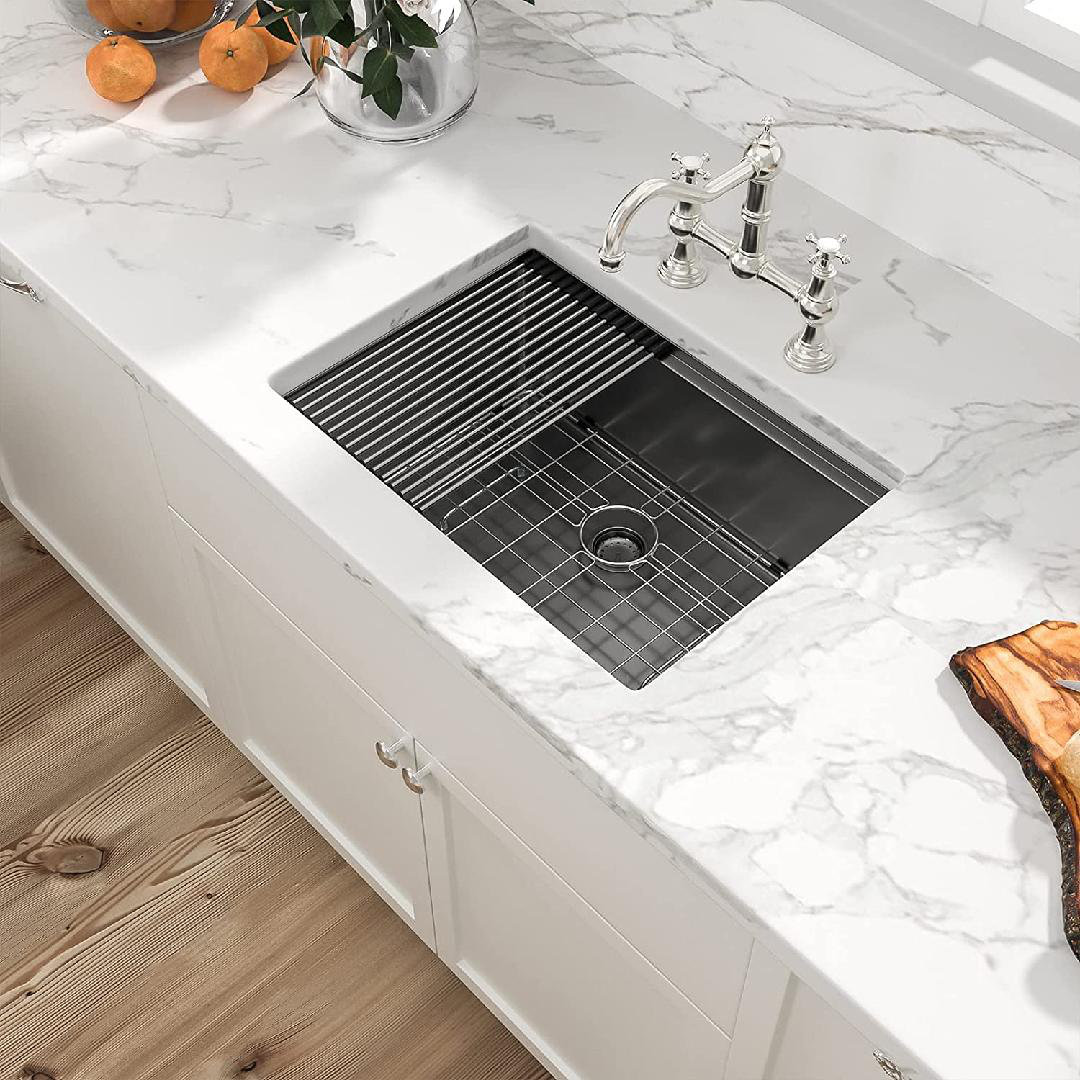 Premium Undermount 16 Gauge Stainless Steel 23.5" Single Bowl Kitchen Sink with Grid and strainer