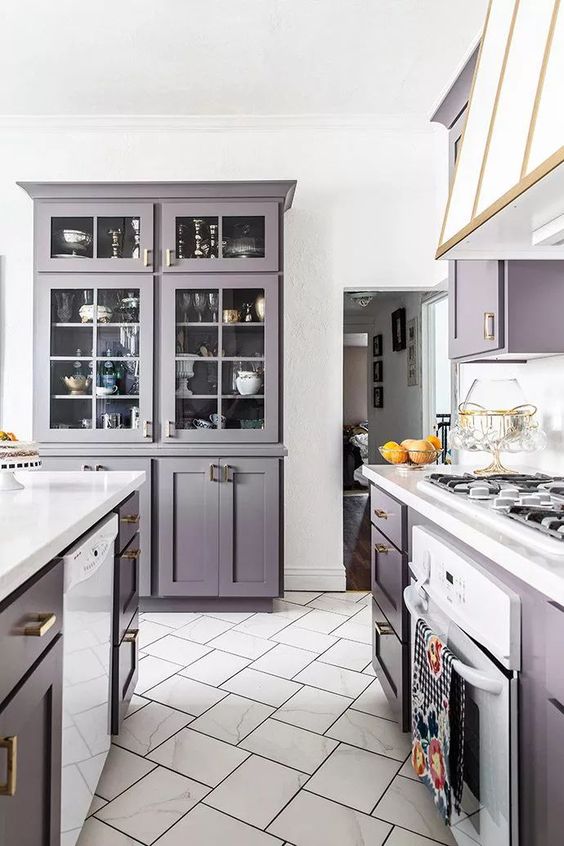 16 Nicely Painted Kitchen Cabinets | Home Design Lover 16 Nicely Painted Kitchen Cabinets Purple Cupboards, Purple Kitchen ... from @hannah_hitchen and pair grey kitchen cabinets with copper accessories to bring ...