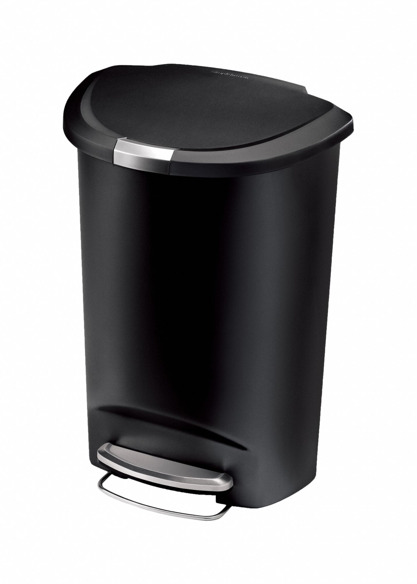 simplehuman 50 Liter / 13 Gallon Semi-Round Kitchen Step Trash Can with Secure Slide Lock, Black Plastic