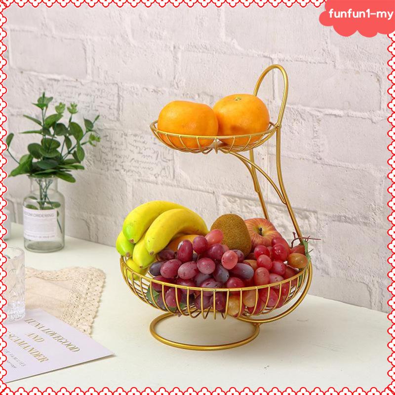 2 Tier Metal Fruit Basket Decorative Snack And Food Storage Stand Basket For Kitchen Living Room - Buy 2 Tier Rattan Basket,Metal Wire Baskets For ...